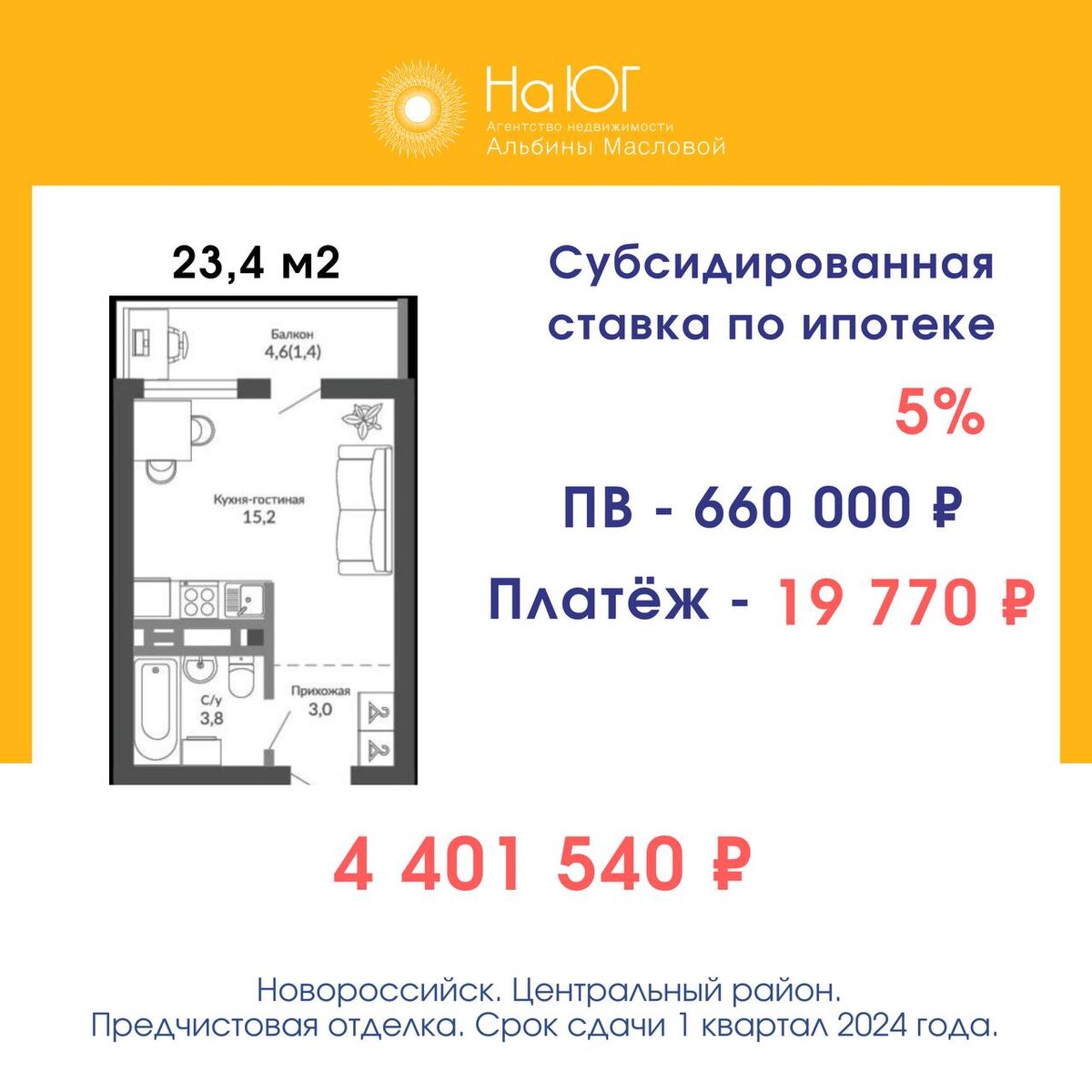 🔥 Акция на квартиры в ЖК в Новороссийске. Субсидированная процентная ставка по ипотеке с 6.7% до 5% без увеличения стоимости квартиры🔥 📍Жилой комплекс на границе Южного и Центрального районов. Срок сдачи 1 квартал 2024 года. Планировки и цены смотрите в галерее ниже: 🌱 Чистый воздух, неплотная застройка 🌊 5 минут до моря, тёплый климат ✅ Закрытый двор 👍 Развитая инфраструктура 🏫 5 садиков, 3 школы, 5 ВУЗов 🚘 2-уровневый подземный паркинг ✅ Детские развлекательные площадки ✅ Колясочные и велосипедные в подъездах !! Действие акции до конца сентября!! Друзья, по наличию планировок, условиям бронирования и покупки пишите нам в вотсап или звоните по телефону📞 8(929)849-88-28.