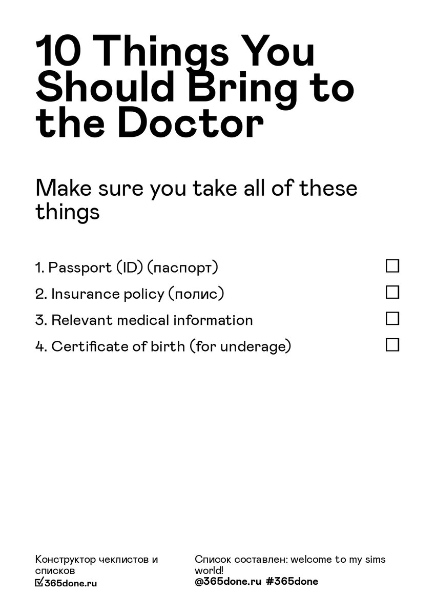 Чек-лист 10 вещей, которые следует взять с собой на прием.