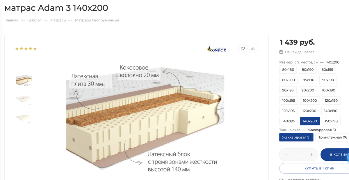 Тип матраса — Беспружинный