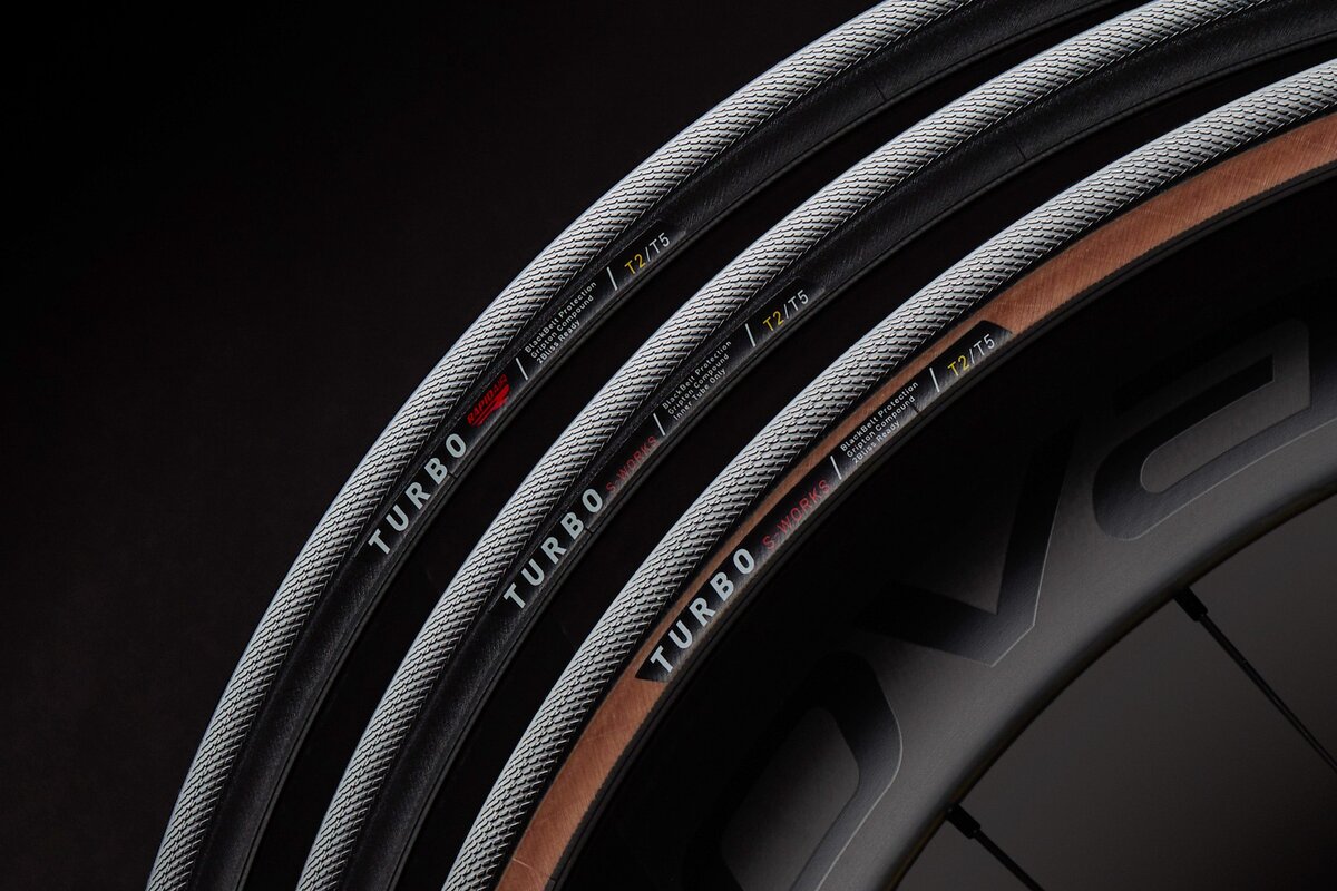 Также, помимо гоночной линейки S-Works, Specialized представили и чуть более простую версию Turbo Pro T5 на более тяжёлом каркасе и с протектором из единого компаунда Gripton T5, что позволило снизить цену.