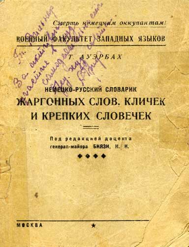 Словарь немецкого военного жаргона. Немецко-русский словарик жаргонных слов, кличек и крепких словечек Ауэрбах Т.Д.
