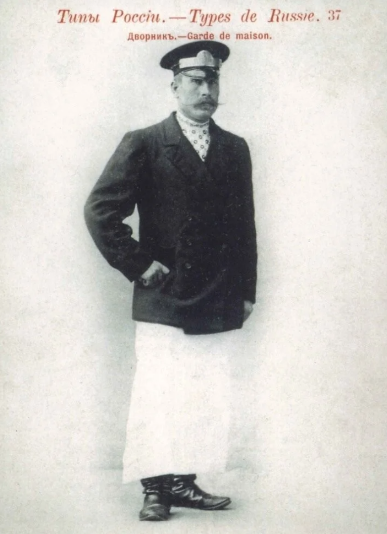 Нельзя не вспомнить о дворниках. В многоквартирных домах был не один дворник, а сразу целый штат. В их обязанности входило далеко не только поддержание чистоты территории, как сегодня. Дворник топил печи, зажигал фонари, приносил утренние газеты и журналы, в случае отсутствия жильцов кормил их собак и кошек, поливал цветы, следил за порядком, свистел в свисток, если видел вора или опасного человека, дежурил по ночам, вел домовые книги с перечнем фамилий и рода занятий жильцов и выполнял неисчислимое множество разных задач.