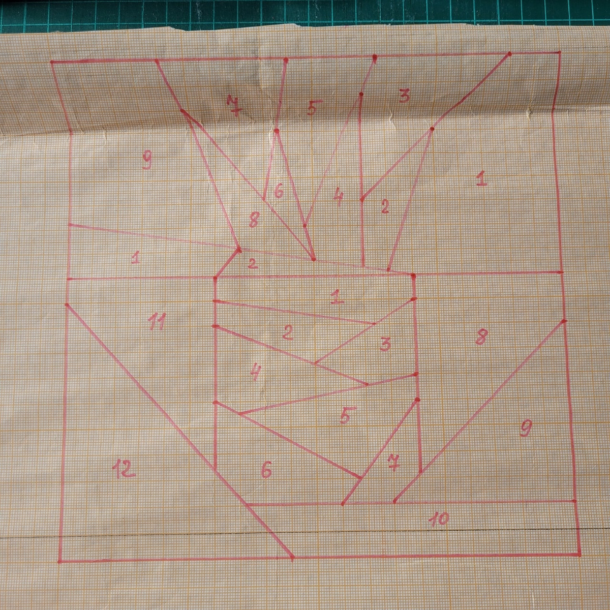 Очень люблю направление в лоскутном шитье: шитье по бумаге (или по бумажным схемам, как иногда говорят). Это способ лоскутного шитья, когда блок рисуется на бумаге, а затем на бумажную основу в определенном порядке пришивают детали из ткани. Этот способ настолько хорош, что позволяет претворить в жизнь порой даже самые невероятные рисунки: я имею в виду сшить из ткани. Всегда хотела попробовать, но всегда откладывала разработку своих схем шитья по бумаге. Мне кажется это очень интересным процессом! И вот наконец, попробовала. Решила взять довольно популярный образ "ананас" и нарисовала его в виде геометричной схемы. Надо сказать, не сразу линии легли так, как мне надо. Сначала пробовала рисовать разные варианты, потом остановилось на итоговом. Далее стала отрабатывать схему, подобрала ткани и сшила два вариант. Вариант первый. Специально фон собрала из разных тканей и сам ананас также. В итоге сделала вывод, что мне не хватает контрастности между фоном и ананасом. Вариант второй. Т