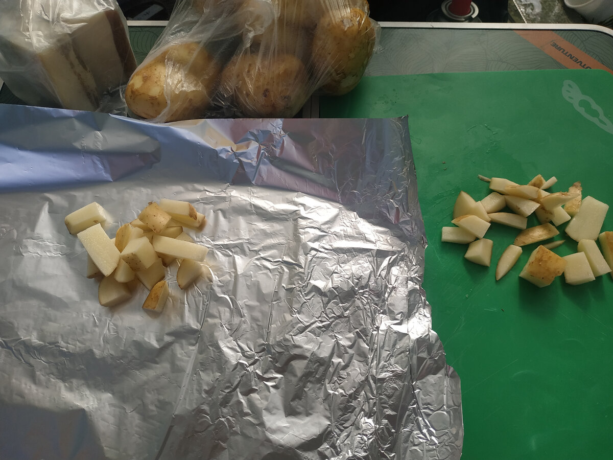 Очень простой рецепт. Призван разнообразить меню на пикниках. Очень жирное, и вместе с тем вкусное блюдо. Картофель надо тщательно помыть и нарезать. Сало, желательно хорошо просоленное. Если оно в соли, то его мыть не надо. Режем и добавляем к картошке. Перемешиваем и заворачиваем в фольгу. Если сало недостаточно соленое, то подсолите картошку по вкусу. И закладываем в угли. Время приготовления зависит от размера порции и температуры углей. Нарезанный картофель готовится быстрее целого. При небольших порциях и хороших углях начинайте проверять минут через 20. Готовится он все равно будет скорее всего неравномерно, так что на выходе вы получите блюдо с разной степенью готовности в разных его частях. Это нормально, разнообразно и очень вкусно ( в лесу все вкусно, поверьте)! Приятного аппетита!:) #рецепты #пикник #картошкассалом