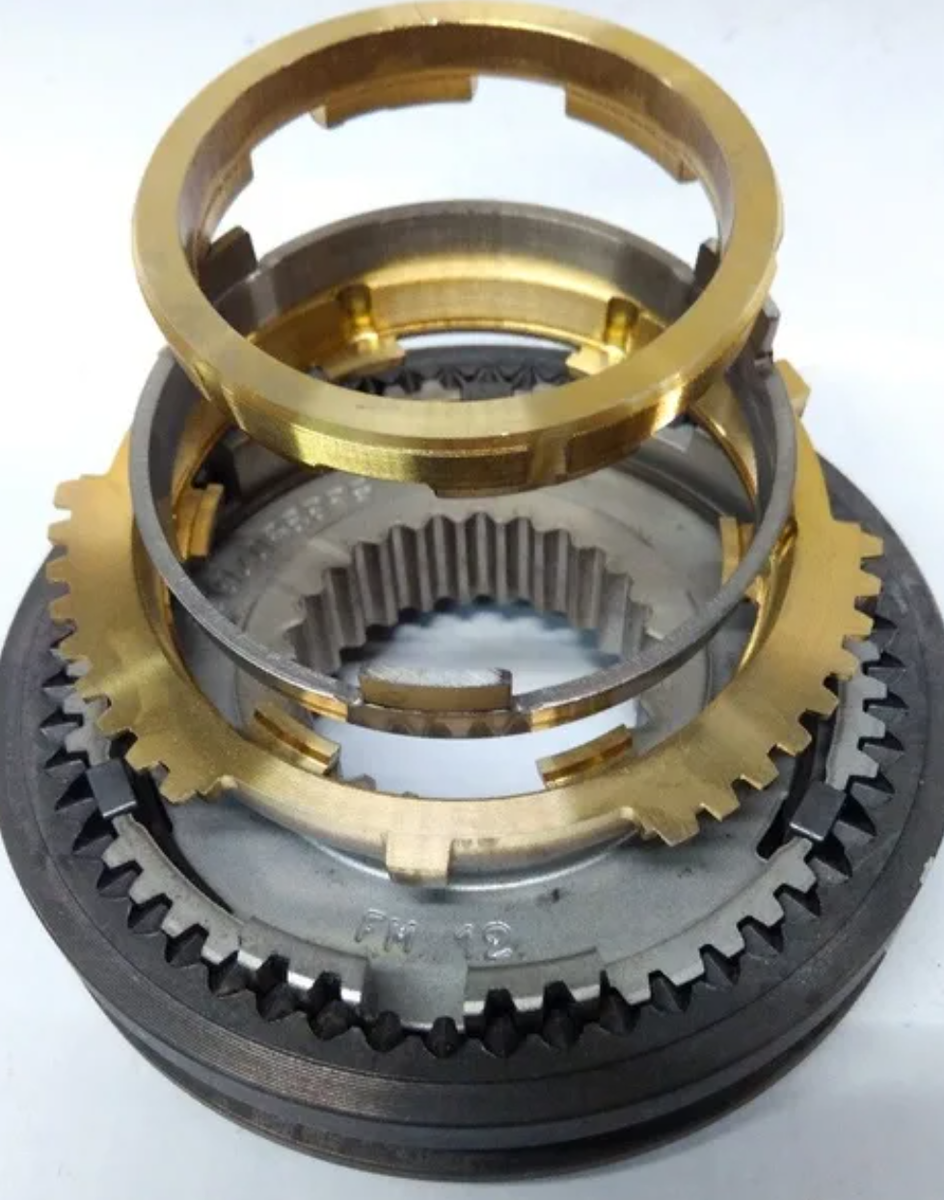 Для сцепления шестерен зубцами в конструкции коробки передач есть подвижные муфты, которые сближают их друг с другом. Но при помощи муфт нельзя добиться, чтобы шестерни начали вращаться с одной и той же скоростью, а без этого они не войдут в сцепку друг с другом плавно и без биения. Для уравнивания скоростей торцы шестерни обточены в конической форме, а между ней и муфтой размещается синхронизатор латунное кольцо с прямоугольными зубцами по одному краю. Как синхронизатор работает? Когда переключаете передачи происходит следующее. Муфта сближается с шестерней, но вначале соприкасается с синхронизатором и, продвигаясь дальше, прижимает его к колесу шестерни. Благодаря силе трения шестерня начинает вращаться быстрее либо притормаживать, в зависимости от скорости вращения муфты. Как только скорости вращения шестерни, муфты и синхронизатора выравниваются, они становятся неподвижными относительно друг друга. В то же время поступательное движение муфты, продвигающей шестерню в сторону вто