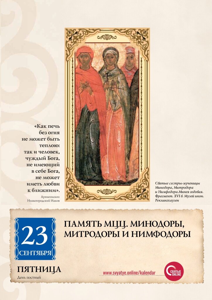 23 сентября - память мучениц Минодоры, Митродоры и Нимфодоры
