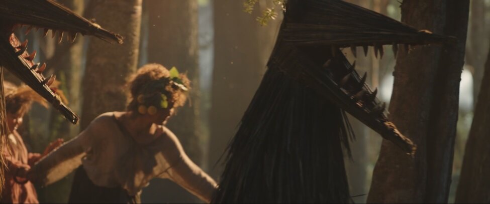 По лесу в слоу мо бегут «те, чье имя мы не называем» из фильма «Таинственный лес», сопровождаемые веселыми хоббитятами.