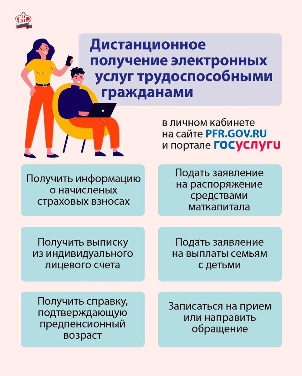 👩💻Получить большинство услуг ПФР можно 👉на портале госуслуг или 👉в Личном кабинете ПФР. 🗓Для получения услуги, оказываемой исключительно при личном обращении, вы можете предварительно 👉записаться на прием Удобно 👍 делитесь с другими 😉