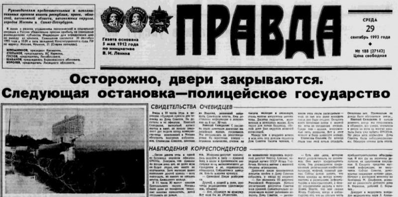 Занятно, что в дни переворота сентября-октября 1993 года, когда рождался нынешний государственный порядок, левая оппозиция предупреждала либералов, чем дело кончится. Либералы тогда в ответ весело смеялись и всецело поддерживали «нашего Бориса Николаевича», лупившего из танков по собственному парламенту.