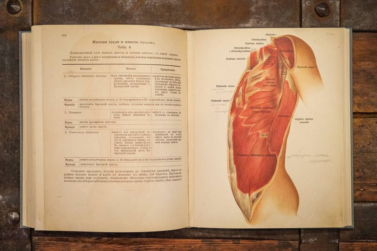 Перед нами – экземпляр Атласа описательной анатомии человека в переводе М. Б. Блюменау, часть первая, 1906 год издания. Книга попала к нам в довольно потрепанном состоянии: со множеством пятен и сбитых уголков, разрывов и утраченных фрагментов, с отсутствующим полностью корешком (известно, что корешки данного издания украшались орнаментом в стиле модерн). Мастера Вашего Реставратора почистили страницы и коленкоровый переплет, обеспылили блок, устранили разрывы и провели тонировку, где было необходимо – реставрировали разрывы. Затем восстановили корешок и заново собрали переплет. Заметна разницу между “до” и “после”? А теперь расскажем подробнее о самой книге. Автор атласа – Йоханнес Саббота (1869-1945), доктор медицины и директор Анатомического института в Бонне (Германия). Его основной специализацией была эмбриология позвоночных. На русский язык атлас перевел М. Б. Блюменау, широко известный своими медицинскими переводами в то время. Редактором выступил Иван Эдуардович Шавловский – вы