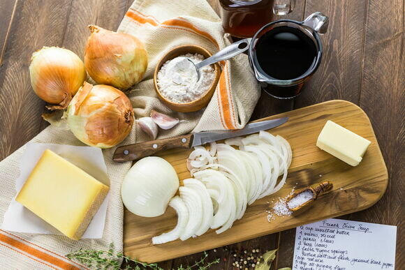 Классический луковый суп подают почти в каждом бистро Парижа. Повторить знаковое блюдо можно и у себя дома. Этот простой рецепт понравится тем, кто хочет насладиться изысканным вкусом сладковатого лука в сочетании с деликатной остротой твердого сыра.