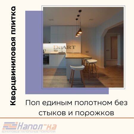 Время идет вперед, и мы с радостью готовы предложить Вам напольное покрытие, которое в силах заменить все виды напольных покрытий кварцвиниловую плитку. Благодаря чему появилась возможность выбрать один материал для всех комнат. Плюсы выбора одного материала во все комнаты: