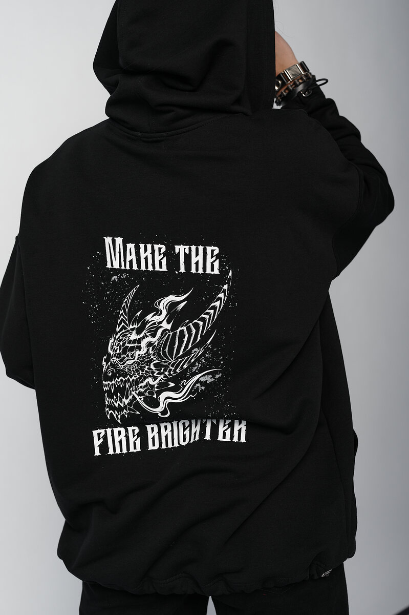 Думаю, сразу начну с интересной аналогии. В мире еды есть понятие "comfort food". Это максимально понятные, любимые, привычные, ассоциирующиеся с уютом и комфортом блюда, пришедшие из детства или с которыми связаны воспоминания. Убеждена, что многие чувствуют то же самое по отношению к одежде. И постулатом удобства всегда выступают толстовки и худи, как атрибуты "Regular fit" гардероба — того, что готов носить каждый день! Конечно, самые удобные и приятные наощупь худи выполнены из плотного трикотажа, например, из кулирки, футера с начесом. Выпуская новую коллекцию, мы обязательно разрабатываем хотя бы одно худи. И вот такие варианты уже доступны к заказу. 1. Худи DRAGON Спереди — это базовое черное худи oversize кроя, сзади — кастомный принт Make The Fire Brightest. Такую толстовку действительно не хочется снимать: уютный длинный рукав, свободный крой не сковывает движения, а большой капюшон позволяет в любое время закрыться от внешнего мира. 2. Худи SPIKE Oversize толстовка с больш