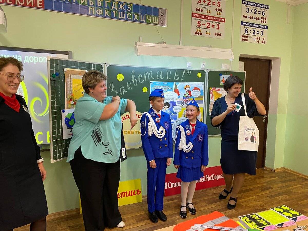 В школе №8 Раменского сотрудники Госавтоинспекции, администрации округа и СБДД вместе с детьми сделали подарки учителям к их профессиональному празднику. Инспекторы рассказали ученикам о световозвращателях и предложили сделать их самостоятельно из картона и специальной бумаги. Получились геометрические фигуры, украшенные кленовым листком. На обратной стороне ученики написали пожелания учителю. Инспекторы передали учителям свои поздравления и пожелали счастья, благополучия, жизненной энергии и безопасных дорог. Детям в конце мероприятия они напомнили правила дорожного движения.