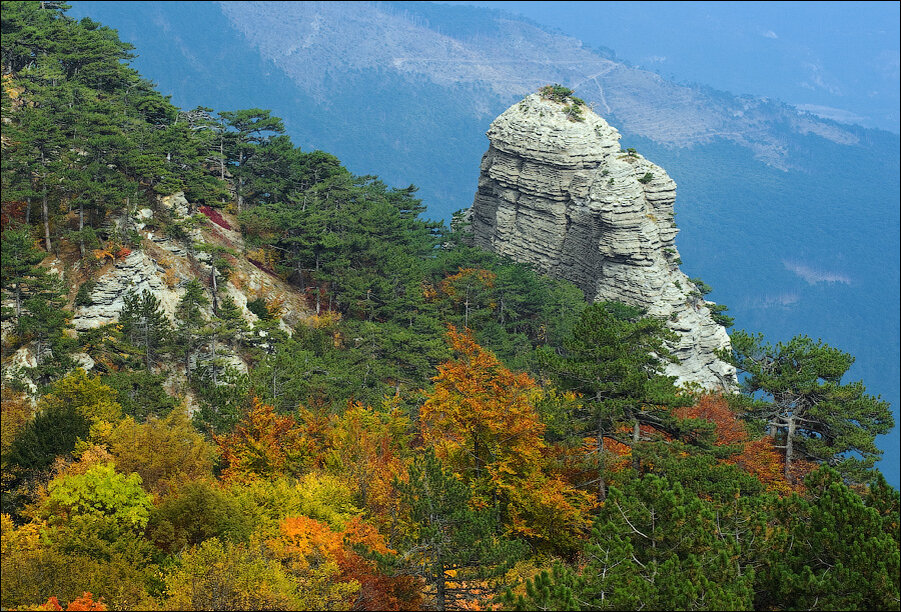 Живой журнал напомнил историю, которая случилась давным-давно, когда нам ещё не приходило в голову вести дневники в сети. И получается, впервые рассказали мы о ней спустя десять лет, день в день, 5 октября. Сейчас перечитали, и захотелось, чтобы и на Дзене была такая красота... В 2009 году мы впервые оказались в осеннем Крыму и впервые же решились на самостоятельный поход через ущелье Таракташ с Ай-Петри в Ялту. Сейчас это кажется забавным, но тогда мы ещё не так часто бывали на крымских яйлах, не так много перевалов прошли — всё было вновь и в диковинку… Утро было пасмурным, и чтобы сбежать от непогоды, мы отправились на Ай-Петри. Не на канатке, а на микроавтобусе — с классическими остановками у водопада Учан-Су и у Серебряной беседки. Водопад не работал — воды на склоне почти совсем не было. То ли дело — на следующий год, когда после недели дождей мы даже приблизиться не могли к ревущей стене, окружённой водяной взвесью и радугами! (Сравните в галерее) А вот у беседки хищных птиц муч
