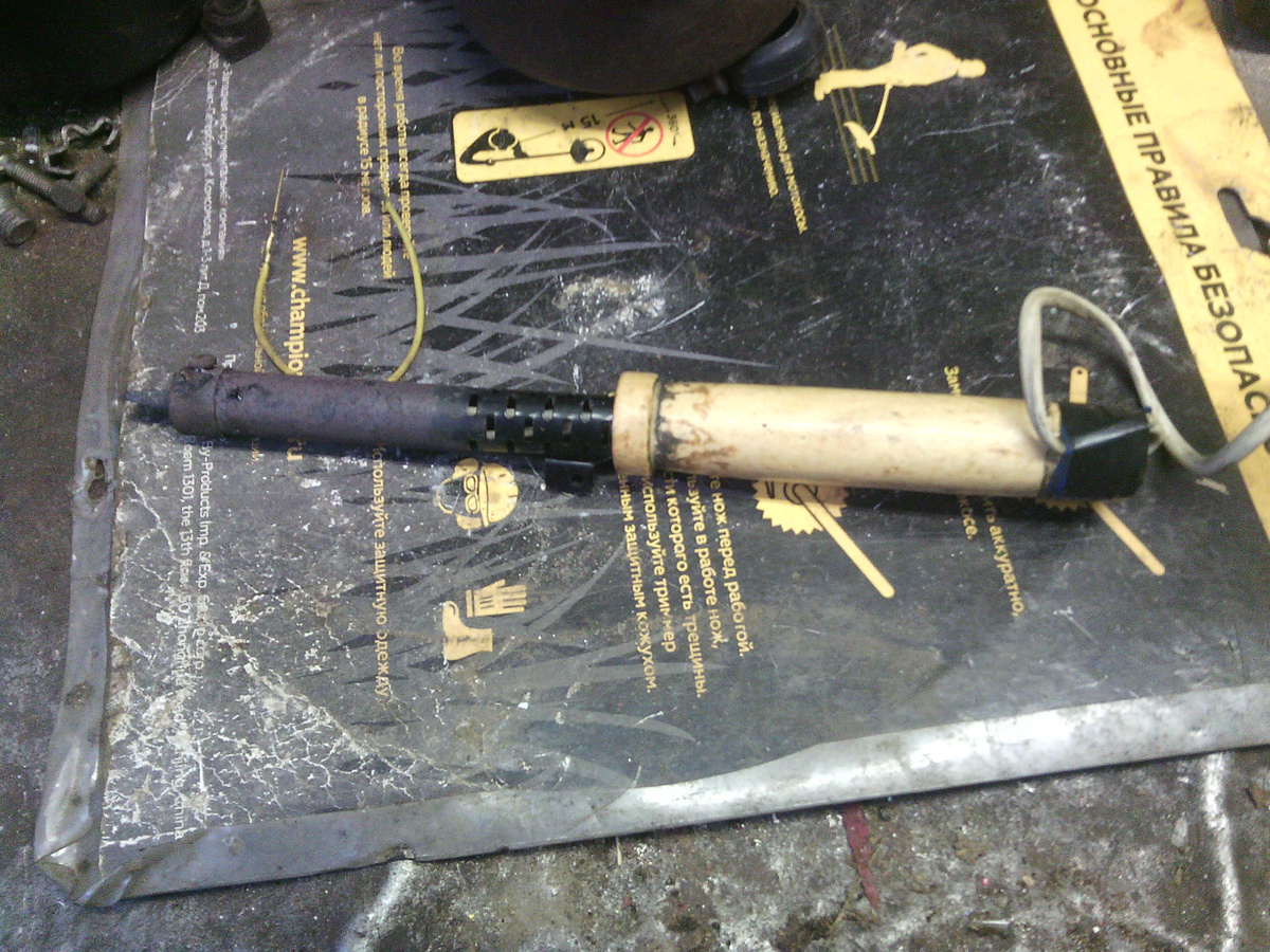 Паяльник одна из самых важных вещей для ремонта автотракторного оборудования,на фото паяльник на 220в 80вт со сменным жалом,у меня он самый востребовательный,обратите внимание на ручку на конце сделана петля из сетевого провода просто с годами изнашивается жилы проводов и они\или один\обламывается обычно в ручке и найти обрыв проблематично,при петле обрыв на 70%будет в начале петли.И по этому при начале пользования многих электроприборов я по привычке делаю петлю и потом убыстряет ремонт.Также не помешает сделать свою розетку на паяльник и укомплектовать её диодом и тумблером при работе тумблер включен диод замкнут паяльник работает на 100%,при выключенным тумблере паяльник работает через диод это примерно 50% мощности и переход в рабочее состояние будет на много быстрее.