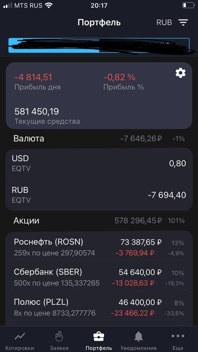 Кэш кончился . Что дальше ? Во первых кэш может кончится если прям уж очень конкретный обвал , так как регулярно идёт фиксация прибыли других позиций . Каждый сам для себя выбирает , хочет он или не хочет на жестком обвале рынка пользоваться средствами брокера . Но кстати по стратегии активного инвестирования это особо то и не требуется . И можно и без этого. Если не хочешь пользоваться маржиналкой даже на историческом обвале , то когда остаётся кэша процентов 5, перестаёшь закупать и работаешь только с одной позицией . Выводишь ее в плюс и далее уже кэша больше становится , то есть дальше по схеме . Если тебя не пугает зайти в маржиналку процентов на 5 на обвале , то работаешь просто по схеме дальше . Вот и все. Можно так , можно и так. Я лично маржиналки не боюсь, тем более понимаю что скоро созреет урожай на некоторых позициях, то есть они выйдут в плюс. Продам - Вот тебе и кэш. #Фондовыйрынок #Акции #Биржа #акции