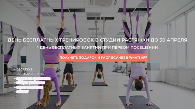 Подобный лендинг включал только один продающий оффер с получением какой-либо информации или бонуса в WhatsApp бесплатно.