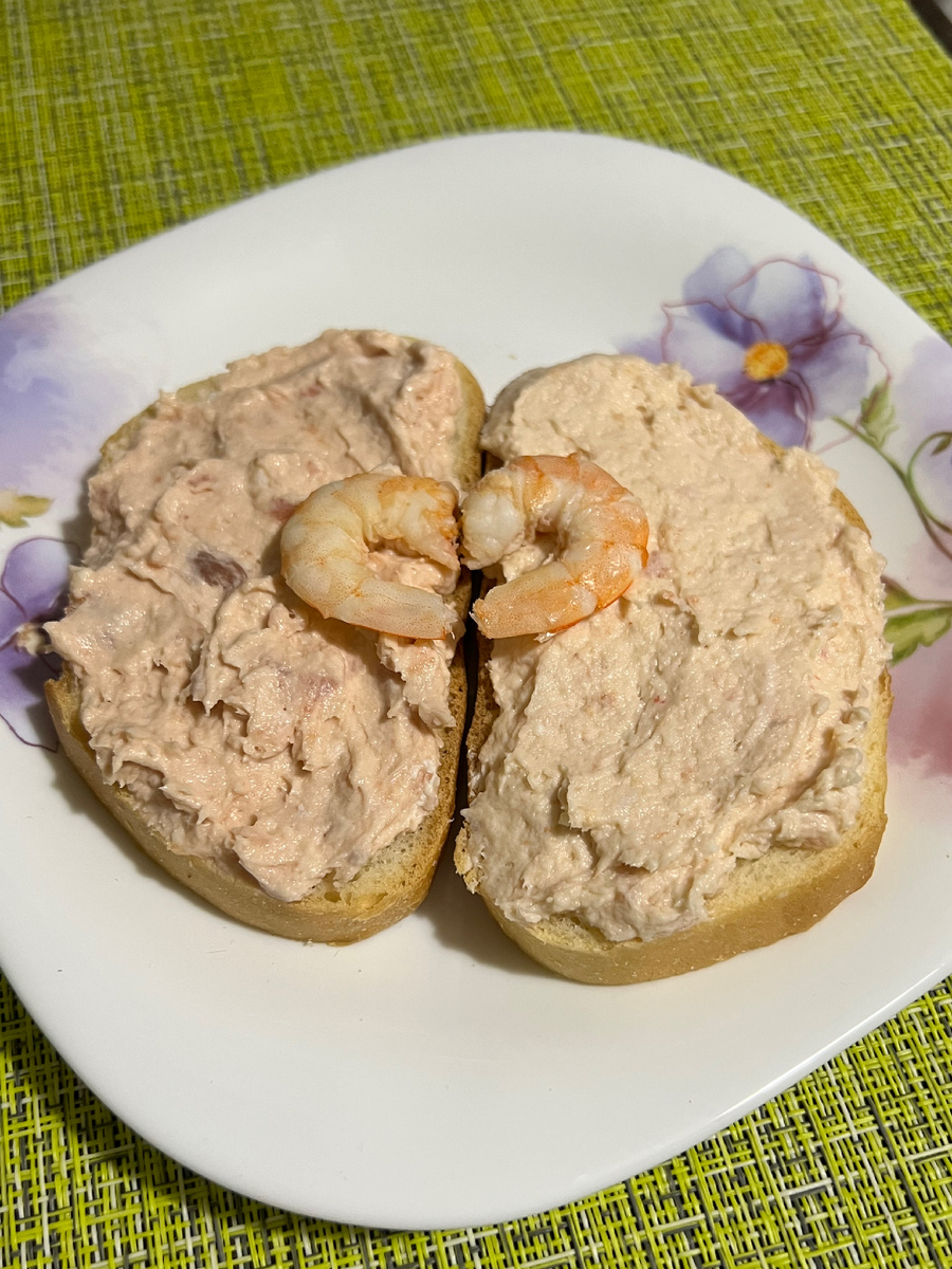 Частенько готовлю селедочный паштет, легко и вкусно:) Ингридиенты: Все перебить блендером. Вот и готово. Да я думаю многие из вас готовили этот паштет, ничего нового. И вот я решила разнообразить этот рецепт. А именно вместо селедки положить другую рыбку. Первый вариант - горбуша п/к. Получилось очень здорово, но рыбка была немного соленой и паштет получился тоже солёненький. Но это ничего, с хлебом очень вкусно:) Второй вариант - креветки. Сначала я хотела положить только креветки, купила почти 600г замороженных в панцире. Сварила, почистила и получилось 150г вместо 220г как нужно в рецепте😅 Поэтому решила положить ещё 75 грамм горбуши, которая добавила запах копчения в мой креветочный паштет. А вообще он получился очень нежный, с ярким креветочным вкусом. Калорийность 100г: 195кал, б-15г, у-2г, ж-14г. Очень удобно когда хочется бутерброд с рыбкой, а времени не хватает, к тому же много белка и полезно, ведь мы точно знаем, что туда положили🫶 Приятного аппетита:)))