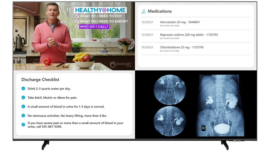 Компания Samsung расширяет свое присутствие в сфере здравоохранения, предлагая мобильные устройства и оборудование для больниц, домашнего здравоохранения и удаленного мониторинга пациентов. В частности, корейская фирма стремится использовать свой технологический опыт для улучшения обслуживания пациентов в палатах. Недавно на Всемирной конференции Общества информационных и управленческих систем в здравоохранении (Healthcare Information and Management Systems Society, HIMSS) компания Samsung представила "умный" телевизор для здравоохранения и цифровые медицинские решения для больниц. Корейский технологический гигант также сотрудничает с компанией ShareSafe для интеграции ее мобильного приложения ShareView для здравоохранения. Это решение создает защищенное соединение мобильного устройства с телевизорами Samsung Smart Healthcare с целью интеграции электронных медицинских карт, а также других источников контента. По словам представителей Samsung, это первый в отрасли 4K QLED "умный" телеви