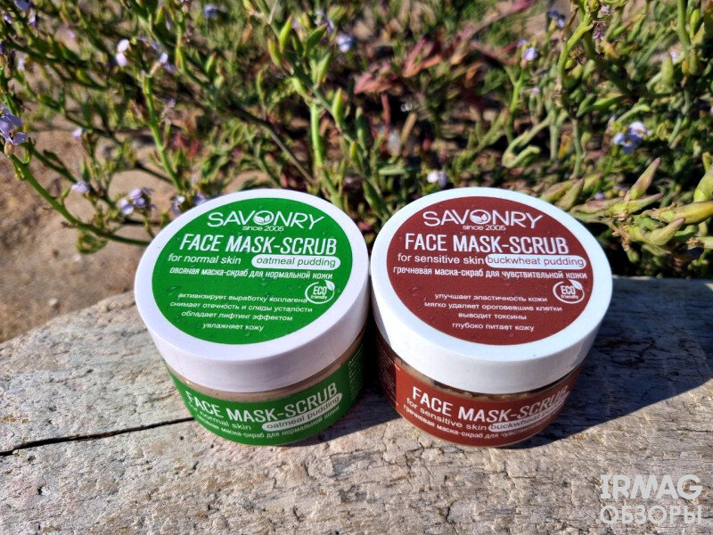 Обзор пилинг-маски Savonry Овсяная для нормальной кожи и пилинг-маски Savonry Гречневая для чувствительной кожи. Пудинг для лица - это что-то вкусное, воздушно-кремовое. С увлажняющим эффектом. А если это ещё и маска-пилинг, то дайте две! В общем, я так и взяла две штуки. Это маски от Savonry, у этой марки очень интересная и доступная по цене продукция. Особенно, если успеть под акцию, как сейчас. Я взяла одну маску для чувствительной кожи, а вторую для нормальной. Но скажу сразу, что большой разницы не ощутила. Обе маски поразительно похожи. Хотя ингредиенты, вроде разные. Обе одинаково щадяще очищают кожу, при этом увлажняют её и питают. Маски идут в прозрачных пластиковых баночках, объёмом по 100 мл. Оттенки соответствуют природным, овсяная маска более светлая, гречневая темнее. Аромат похожий, мне пахнет печеньками и йогуртом. Очень вкусный завтрак. Наверное, поэтому к этим маскам рука так и тянется с утра. А вот с нанесением немного сложнее. Есть чувство, что я наношу на лицо кро