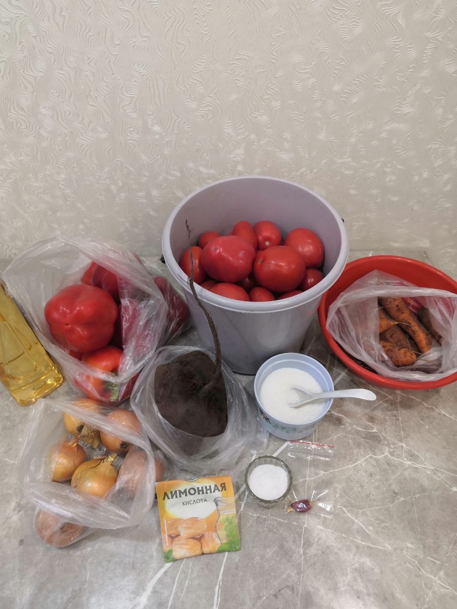 Борщ на зиму - отличная заготовка для тех, кто занят на работе и не может проводить много времени на кухне. Ингредиенты: Помоем и нарежем овощи. Пропустим через мясорубку лук, сладкий перец (1шт острого перца - по желанию) и томаты. Пропустим через тёрку морковь и свеклу. В кастрюлю вливаем растительное масло и выкладываем все овощи. Перемешиваем и варим с закипания 2 часа без крышки. Добавляем соль, сахар и лимонную кислоту и кипятим ещё 10 минут. Выкладываем в стерильные банки и закатываем. Убираем под "шубу" на двое суток, далее на сутки в холодильник. После можно хранить в сухом, прохладном месте. Выход 7 банок 0,5л, примерно 3,5л. Приятного аппетита!