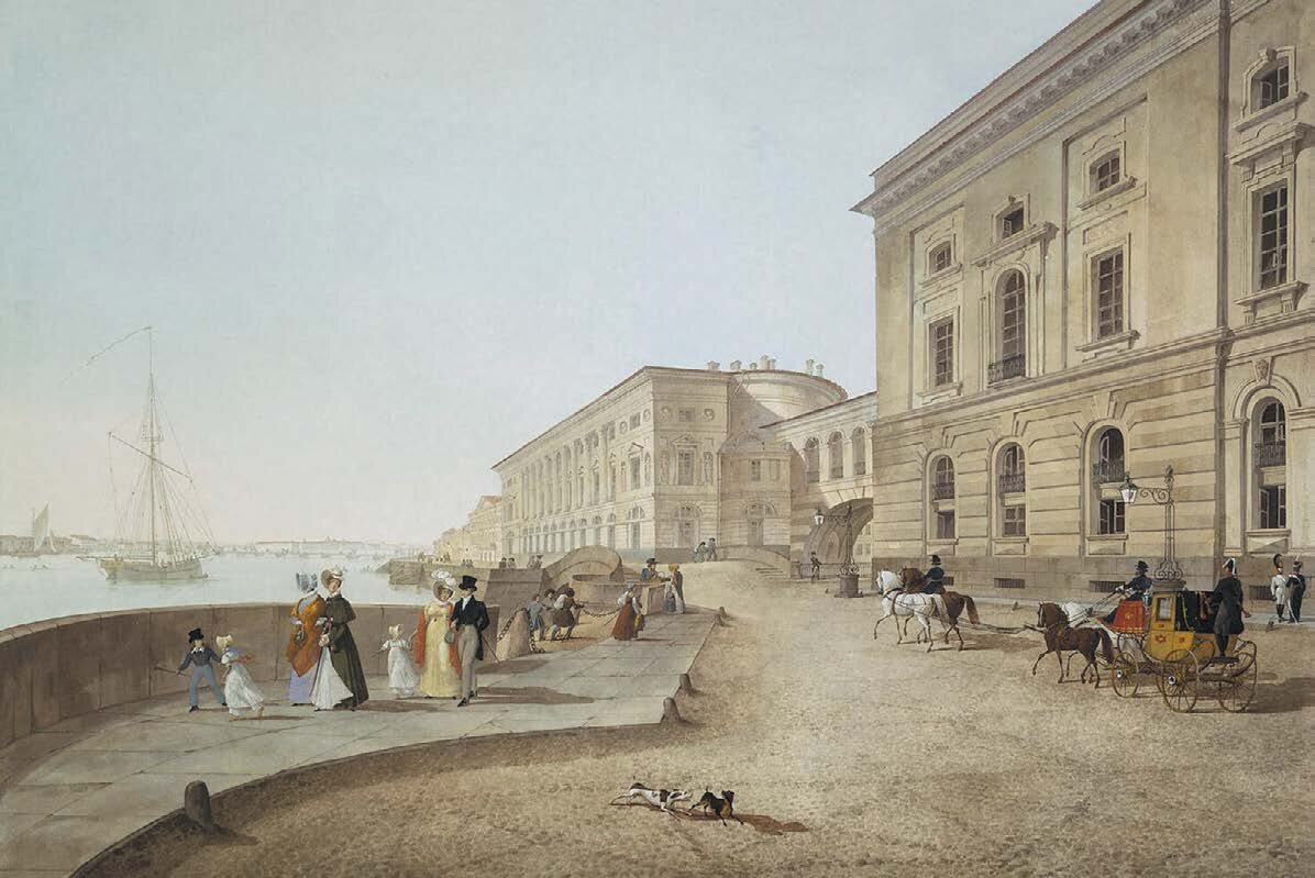 В театр можно было попасть с набережной или из Зимнего дворца по галерее, построенной над Зимней канавкой сооруженной архитектором Фельтеном.