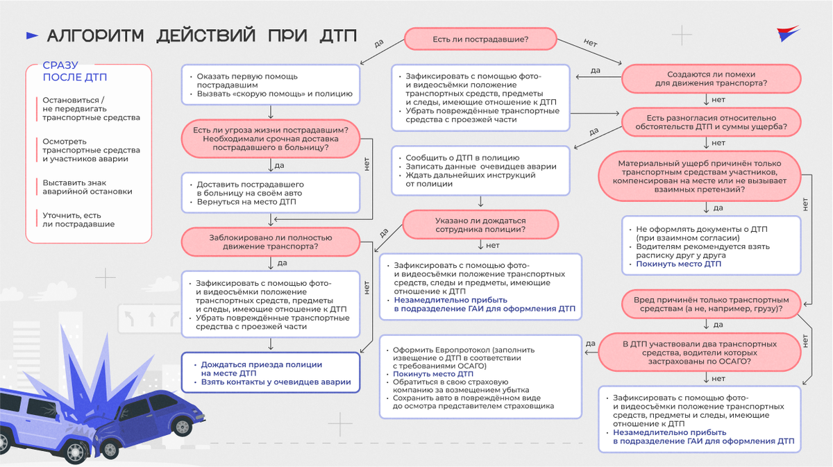 АЛГОРИТМ ДЕЙСТВИЙ ПРИ ДТП