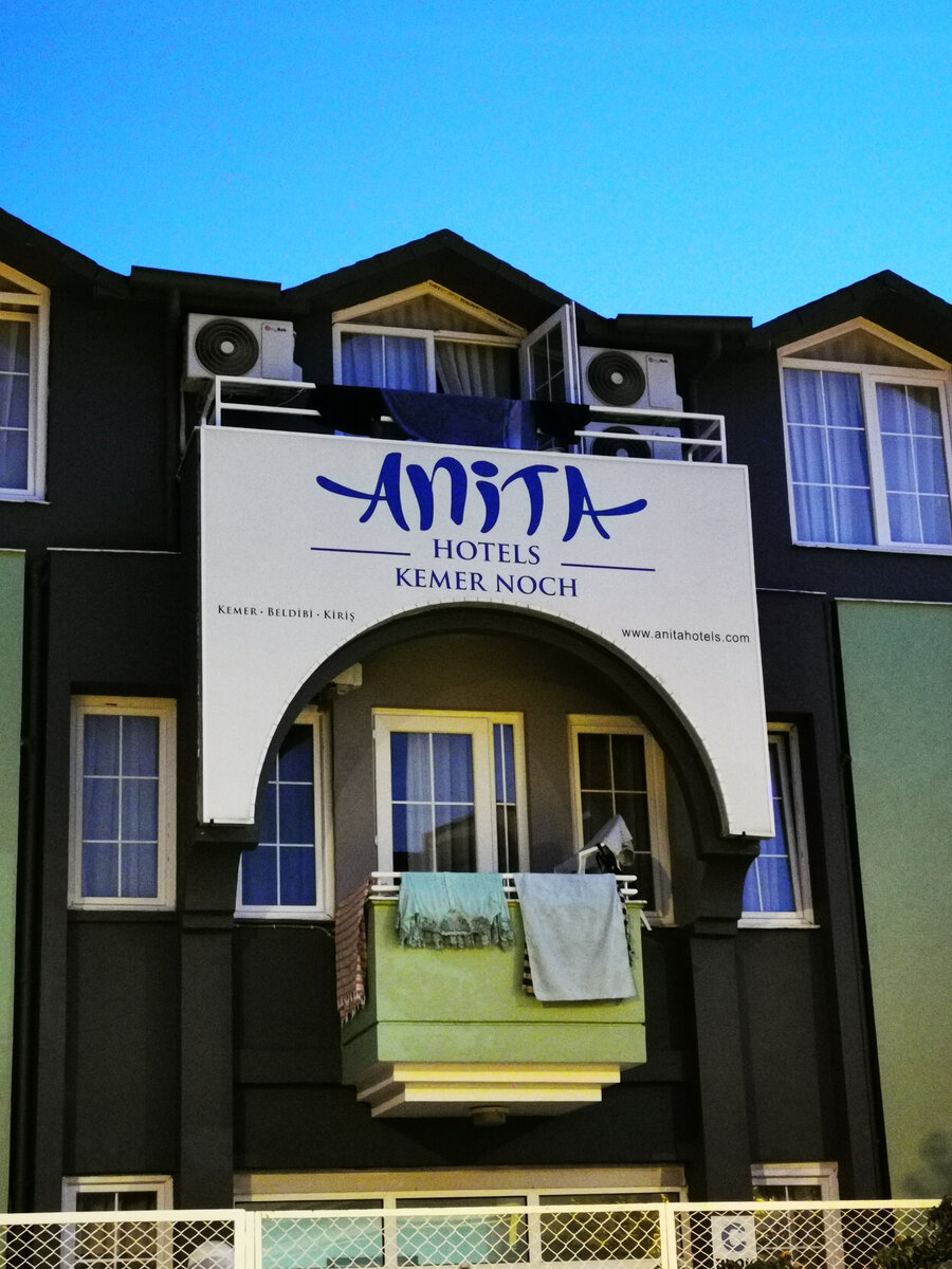 Анита заявлена, как четырех звёздочный отель, по факту вялая тройка! Тем, кто ездит отдыхать с детьми точно не сюда. Территории нет, развлечений нет. Отель не предназначен для постоянного в нем нахождения. Прийти переночевать не более.