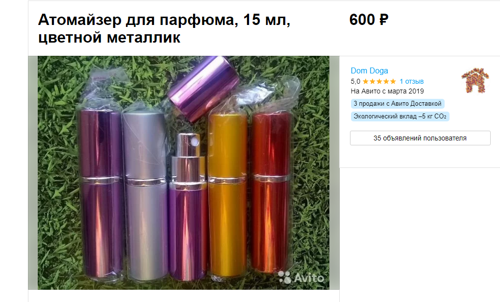 Цена в объявлении была указана - 200 рублей - за один атомайзер. Первоначально их было 5, а к моменту вчерашней встречи с покупателем их оказалось - три новых, а не четыре, как я полагала. Поэтому, покупатель рассчитался за три атомайзера, переведя 600 руб. мне на карту. Объявление за ненадобностью тотчас же отправилось в архив.