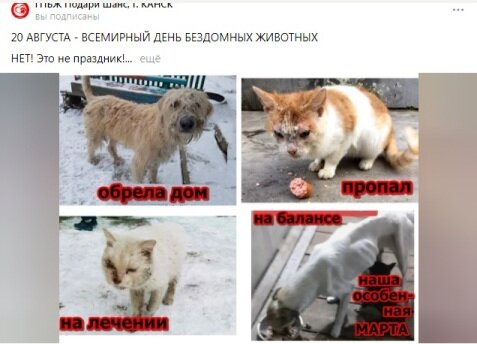Дорогие наши подписчики и просто читатели канала, сейчас Ваша помощь и поддержка крайне необходима🙏. Пожалуйста, дочитайте пост, поставьте лайки и сделайте репост. Подпишитесь, если вы еще не с нами. Да, это решит судьбу ВСЕГО ЛИШЬ ОДНОГО бывшего бездомыша... НО он тоже хочет ЖИТЬ🙏 и верит в нашу ПОМОЩЬ. Скрин одного из наших постов👇 Посмотрите на белого котика в левом нижнем углу! Знакомьтесь - БЕЛЯШ♥! Наш нежный Беляшик... Все это время он на лечении🥺... Кратко о его истории... Судьба нас свела с ним этой весной. Он был спасен с улицы города Иланский (город вблизи Канска) в страшном болезненном состоянии. Местные ветврачи предложили только усыпление. МЫ НЕ ОТСТУПИЛИ! Беляш был доставлен в клинику Бауэр Красноярска. ДИАГНОЗ: ЗАПУЩЕННЫЙ КАЛЬЦИВИРОЗ! У него во рту были не язвочки, а отверстия в языке😫. В клинике кальцивироз вылечили! Выписывали домой с анемией и сниженным иммунитетом на восстановление. Только заметные были улучшения🙏, как резко началось ухудшение состояния😫: ✔