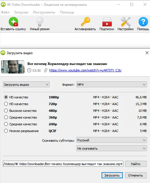 Бесплатный загрузчик 4K Video Downloader позволяет скачивать ролики в один клик, а специальный умный режим не требует каждый раз настраивать необходимые параметры (язык субтитров, качество видео и формат). Достаточно один раз применить настройки, чтобы они учитывались в будущем. Кроме того, с помощью 4K Video Downloader можно сохранять целые плейлисты и каналы с YouTube в высоком качестве и различных видео- и аудио-форматах, а также скачивать новые видео автоматически, как только они будут опубликованы на видео-хостинге.