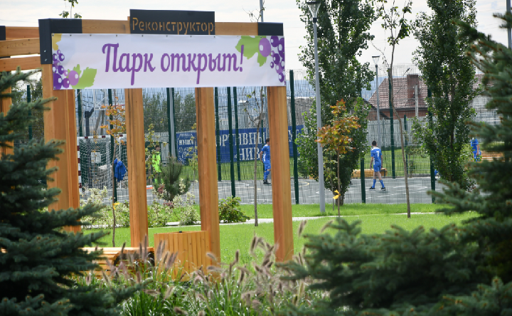 На пространстве площадью 1,2 гектара проложены пешеходные дорожки, установлены теневые навесы, скамейки. Построены большая детская площадка и комплекс для игровых видов спорта, уличные турники. Для прогулок в вечернее время смонтировано современное освещение. Парк назвали «Гроздья Реконструктора» в память о героическом прошлом посёлка, который был создан на базе знаменитого на всю страну виноградарского совхоза. Глава администрации Аксайского района Сергей Бодряков постоянно контролировал работы на объекте во время строительства и лично оценил итог проделанной работы: — Парк получился уютным и функциональным, здесь есть возможности для прогулок и занятий спортом для людей всех возрастов. Уверен, что он станет любимым местом отдыха у жителей посёлка. Считаю, что это прекрасный пример того, как национальные проекты помогают благоустраивать сельские территории, делают жизнь на селе комфортнее, – отметил Сергей Бодряков. Средства на создание парка были получены благодаря участию в национал