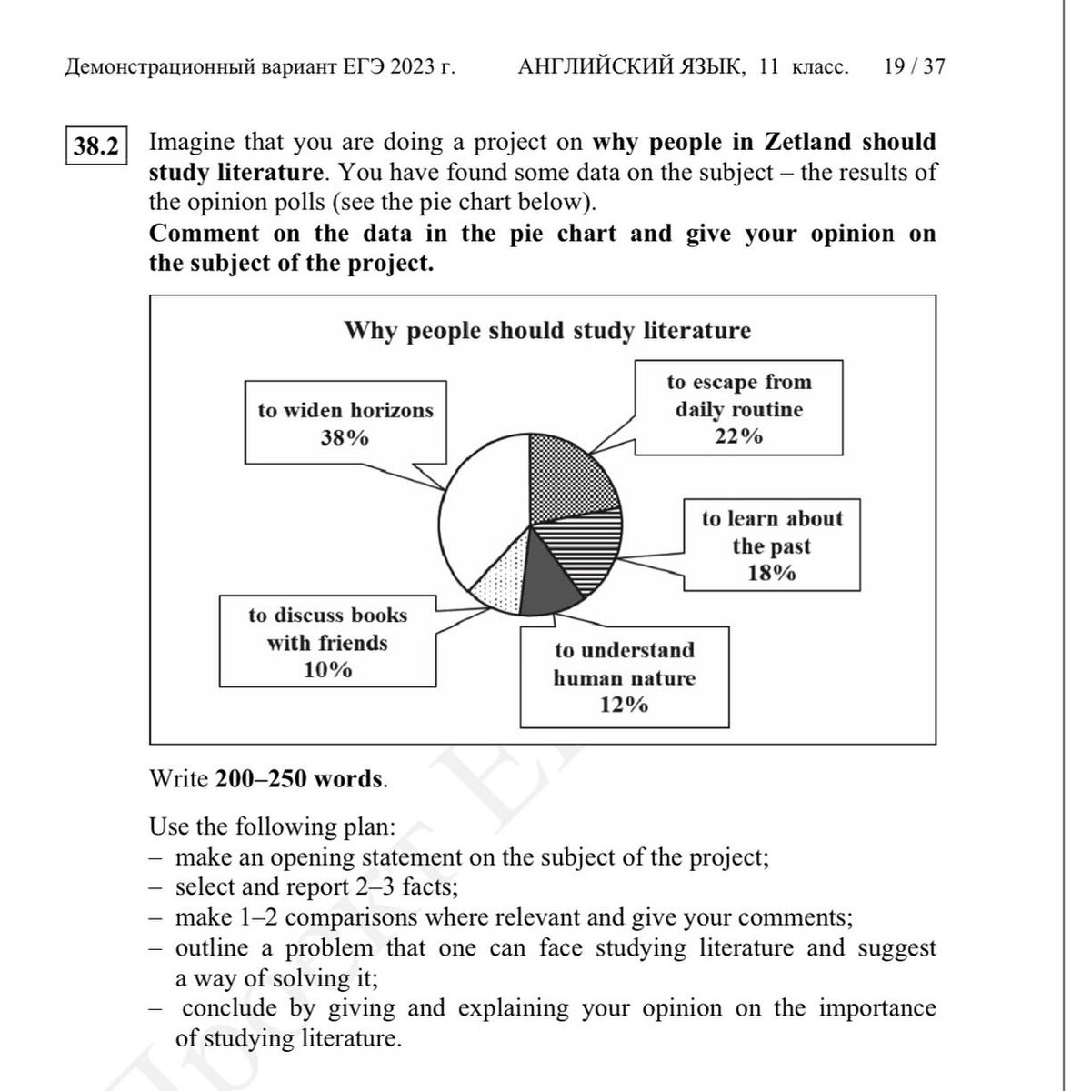 Как описывать диаграмму? Ловите полезные клише для описания задания 38. Вступление (make an opening statement on the subject of the project). Здесь надо упомянуть, что вы делаете проект, нашли материалы к нему и сейчас про это будете рассказывать. Основные факторы (select and report 2-3 facts). Надо проанализировать данные, указав любые 2-3 характеристики. Cравнения c комментариями (make 1-2 comparisons where relevant and give your comments). Хочу сразу заметить, что если вы делаете 2 сравнения, то комментарий достаточно дать по одному пункту. Проблема и решение (outline a problem that can arise with…and suggest a way of solving it). Проблема может быть как в статистике, так и в теме проекта. Заключение и свое мнение (conclude by giving and explaining your opinion on the importance of …) Личное мнение автора по теме проекта и заключение (мнение может быть не связано с данными таблицы)