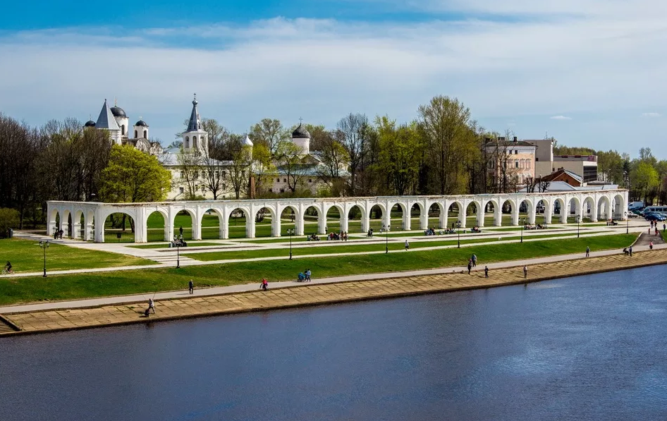 В средневековье Новгород был центром торговли всего севера Руси. Один из крупнейших торгов в Европе тех времен находился на торговой площади Ярославово дворища. Это было место встречи купцов с севера и юга Европы, которые съезжались сюда, чтобы обмениваться друг с другом товарами. В 11 веке здесь был построен деревянный дворец князя Ярослава Мудрого. И в те времена эта территория называлась Ярославов двор. Дворец князя не сохранился до наших дней. К Яровлавову двору примыкал новгородский торг. Торговые ряды шли параллельно друг другу и упирались в реку Волхов. Каждый ряд назывался специфическими названиями, зависящими от товара, которые на нем продавались. Атмосферу торговой площади тех времен хоть и отдаленно, но можно ощутить, если очутиться на Ярославовом дворище в какой-либо городской праздник. Эта территория превращается в торг, где множество людей что-то продают и что-то покупают. Отличие состоит лишь в том, что в средние века сюда приезжало много заграничных купцов. В стародавни