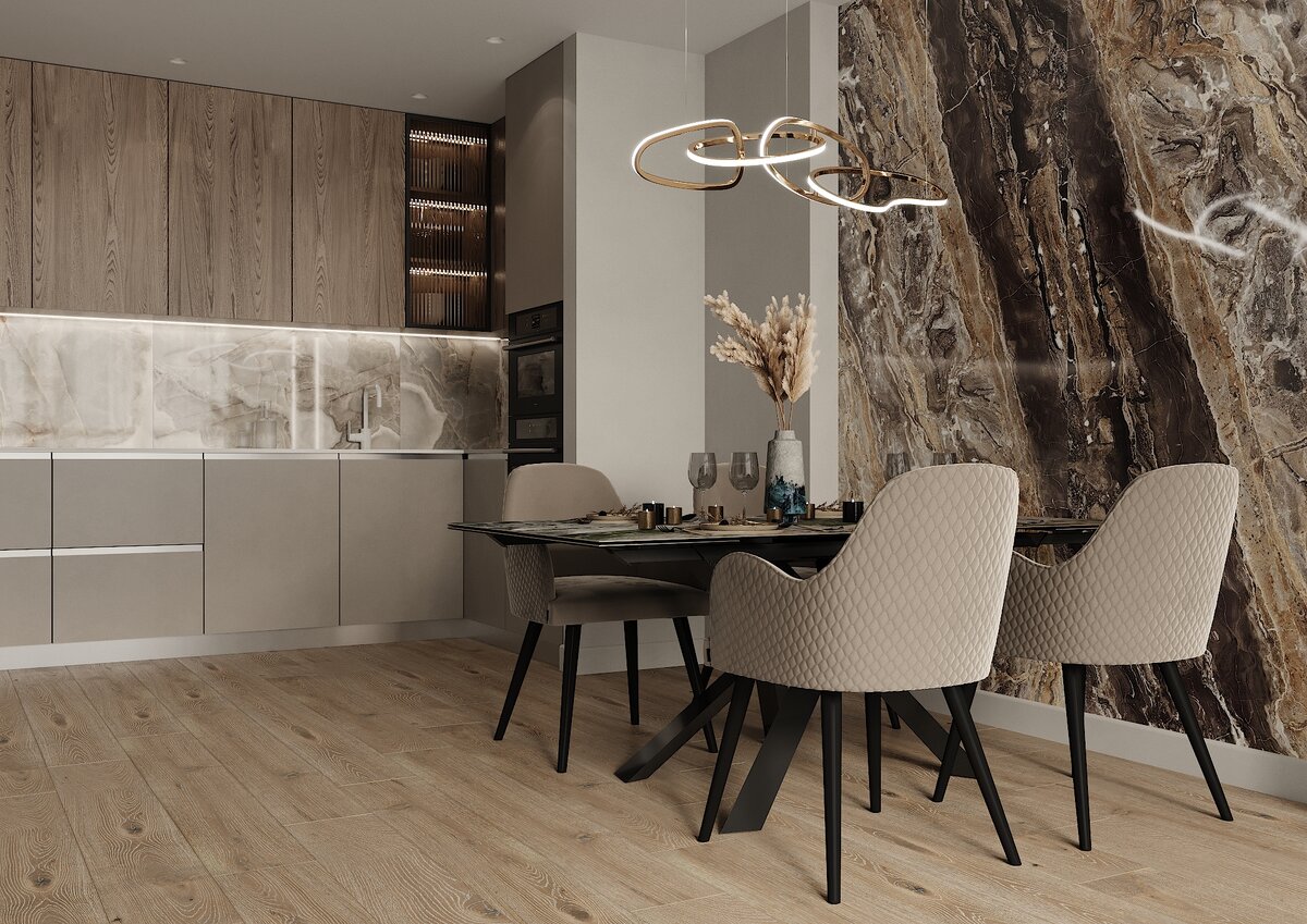 Керамогранит под мрамор идеален для современного интерьера и на данный момент находится в ТОПе почти всех дизайнеров интерьера. Его практичность неоспорима, он влагостойкий, а его глянцевая поверхность визуально расширяет пространство.