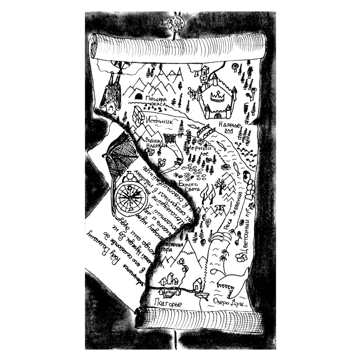 - Здесь какая-то карта, видимо довольно старая, потому что таких названий я никогда не слышал, - сказал Тео, разбирая ворох бумаг на следующий день. - Я видел еще где-то письмо, в котором говорилось про карту и компас, сейчас, где-то оно было тут. Карта была довольно интересной, хотя и очень большой кусок ее когда-то сгорел. Там была изображена наша местность, что к западу от замка, за рекой. Туда никто из жителей не ходит и даже мост разрушили в страхе перед лесом. Мы называли его Лес предков, когда-то давно туда ходили в праздники и проводили обряды, собирали травы и цветы, общались с духами умерших. На карте он обозначен как Черный лес и не зря - много деревьев там со смоляно-черной корой, хотя нет никаких воспоминаний что он когда-то горел. Все черные деревья - настоящие исполины - уж не знаю сколько им лет, но они точно пережили мою пра-пра-пра бабушку. Пещера, в которой сейчас находится шахта названа Пещерой Ужаса с летучей мышью рядом. Горники, конечно, не говорят что там уж оче