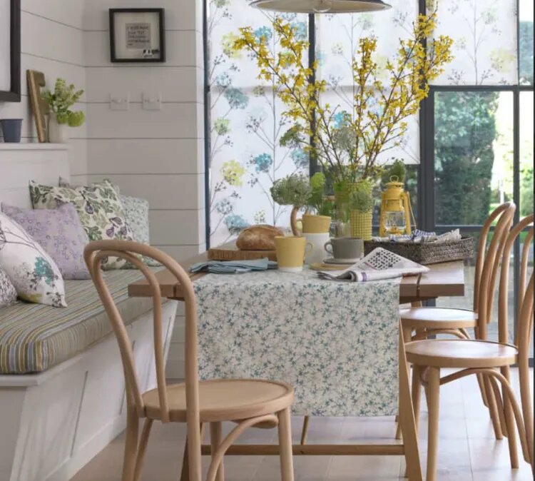 Наконец, сделать столовую "теплой"невозможно без добавления в нее текстильных элементов. Поэтому обратите внимание на обивочную ткань дивана, подушки, материалы, цвета и узоры, которые способны полностью преобразить пространство. То же самое относится и к оконным занавескам, коврику, если вы решите разместить его под столом, и скатерти, которая стильно завершает дизайн.