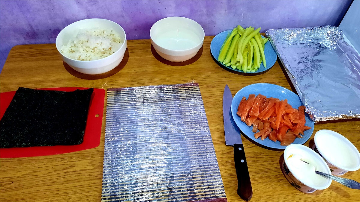 Про продукты напишу для классических роллов. Чтобы сделать их дома вам понадобится: