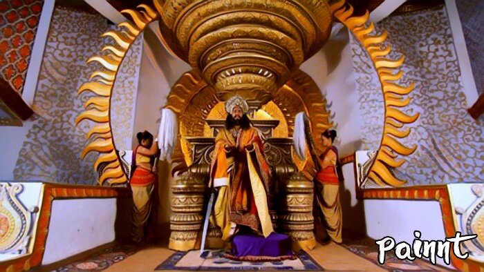 Обезумевший принц сам не понял, как оказался в тронном зале. И тут перед ним предстали Ангарадж Карна, Гуру Дрона, Великий Бхишма, министр Видура – каждый с лицом Кришны!