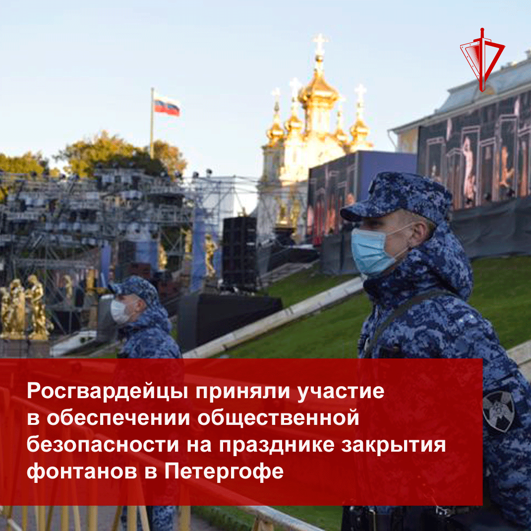 Военнослужащие специального моторизованного полка Северо-Западного округа Росгвардии приняли участие в традиционном фестивале закрытия фонтанов в Петергофе.