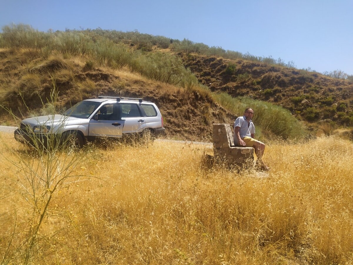 Иногда заедешь неожиданно на машине по vía pecuaria на лысую и пропеченную гору, а там каждые двести метров неизвестно для кого сооружены и расставлены вот такие вот каменные скамьи, совершенно обжигающие, когда солнце в зените. Потом лезешь в словарь, чтобы выяснить, что это за дорога была, при въезде на которую кирпич стоял, но ты его проигнорировал, поскольку мнишь себя местным, моначильеро, которому любые трассы и тропы по колесу его внедорожника?.. И узнаешь, что vía pecuaria - это скотоводческая тропа, маршрут, по которому испанские животноводы гонят коров, овец и коз на пастбища. Протяженность этих скотоотгонных дорог в Испании - более 150 000 километров, они охраняются государственными законами. И на личной автомашине досужие поездки по таким дорогам осуществлять нельзя. Но если уж заехал, остановись на минуту, полюбуйся окрестными холмами и полями, полузаброшенными виноградниками. И отдохни на раскаленной жаром солнца каменной скамье, установленной тут только для пастухо