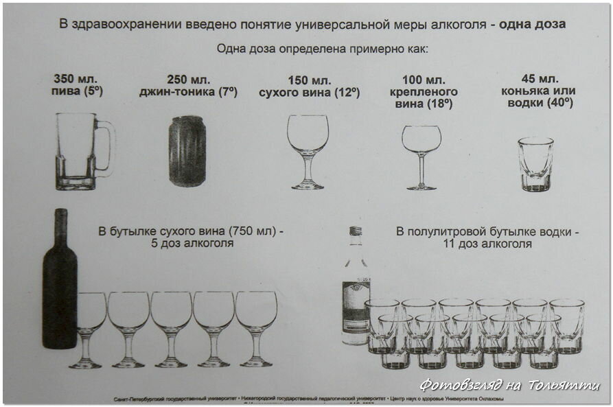 Существует условное понятие - "одна доза алкоголя". Сделано это для того, чтобы люди понимали, чем грозит их организму каждый бокал вина или рюмка виски. Главная практическая польза от этой таблицы - каждая доза алкоголя оказывает влияние на ваш организм! Каждая! В том числе - самая первая! Отсюда вывод первый - если вы что-то планируете сделать "на трезвую голову", то делайте действительно на трезвую голову, не успокаивая себя нелепым доводом, что "уж 100 грамм мне не помешает". Помешает даже меньшее количество грамм. Даже если это не сказывается на вашей моторике (вы не падаете под стол и ноги не заплетаются) - воздействие на мозг алкоголь уже оказывает. Вывод второй, принципиально важный - каждая условная доза алкоголя перестает действовать через час после принятия. Но! Только у практически здоровых людей, не имеющих особых проблем с пищеварительной системой и психическим здоровьем. Люди слишком разные, даже медицина не дает в этом случае твердых гарантий. Эти выкладки - лишь ори