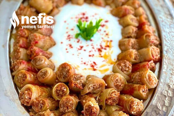 Ингредиенты для рецепта 5 кабачков 200 грамм говяжьего фарша 1 стакан бесплодного булгура 1 стакан горячей воды (для замачивания булгура) 1 луковица (мелко нарезанная) 1 чайная ложка томатной пасты 6 столовых ложек масла Паприка, соль, перец, тмин Для соуса 1,5 стакана воды 1 столовая ложка томатной пасты Соль Способ приготовления. 1.Прежде всего, возьмем булгур и горячую воду в миску и перемешаем. Когда булгур набухнет, добавьте остальные ингредиенты по одному и хорошо перемешайте. 2.Очищаем кабачки и тонко нарезаем. 3.Затем наносим внутренний раствор и заворачиваем. 4.Подготовим таким образом весь раствор и выложим его на поднос. 5.Смешайте ингредиенты для соуса и выложите на противень. Готовим в духовке при 190 градусах до румяной корочки Приятного аппетита. ПРИЯТНОГО АППЕТИТА.
