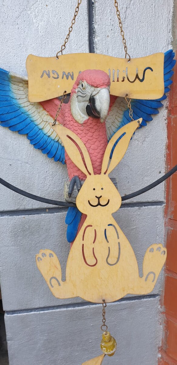 Надпись таблички никак не прочесть. Что сие значит? Что это есть? Хвостик у зайки как будто звонок.. Крыльев размах... Но не сделать рывок. Что с попугаем? Как будто распят. Глазки печально у птички глядят. Гномам пора зажигать уж фонарь. Видно, сигнал уже подал звонарь. Мама с детёнышем, а папа один. Взирает сурово себе господин. Дама свободная. В вечном полете. В ней никого вы не узнаете? Фото Елены Лабо