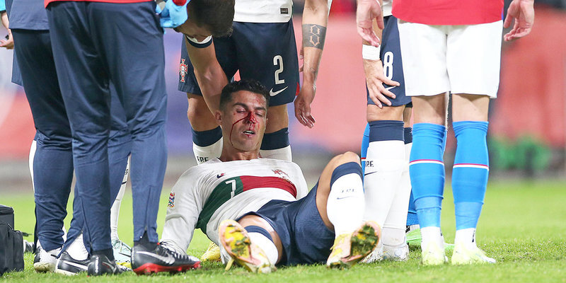 Роналду разбили нос во время матча Лиги наций с чехами, форвард смог продолжить игру