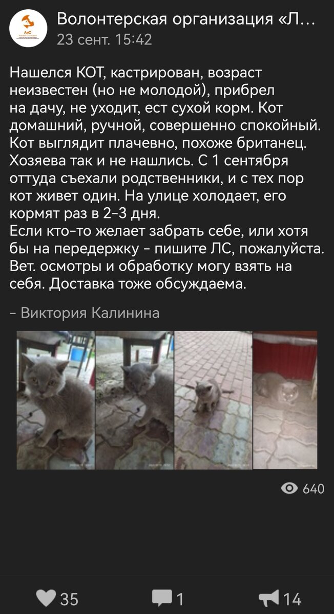 Вчера к нам приехал брошенный на дачах кот. Увидели про него пост в Самарской волонтерской группе. Кастрированный вроде бы породистой кот появился ещё в июне. С тех пор никто его не искал. Диана предложила назвать нашего новенького Борисом. Состояние у Бориса не фонтан. Худющий, шерсть ужасная, зубы кошмарные... Или старичок или так жизнь потрепала. Сегодня Борис поехал на осмотр и если врач посчитает нужным обследования. Я попросила сделать ему тест на ВИК и ВЛК. По зубам он очень похож на кота с иммунодефицитом. Если захотите помочь коту Борису Карта СБ 5469 5400 2504 6697 на имя Татьяна Анатольевна Л. не привязана к телефону Карта Тинькофф 2200 7004 2775 7173 привязана к номеру т89023235350