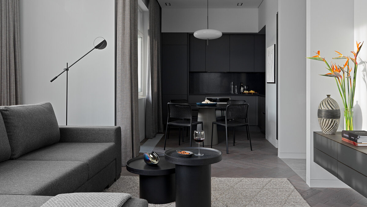 Екатерина Чеботарева и Елена Скворцова оформили двухкомнатную квартиру в центре Москвы, вдохновившись урбанистическими видами мегаполиса и четкими ритмами городских зданий