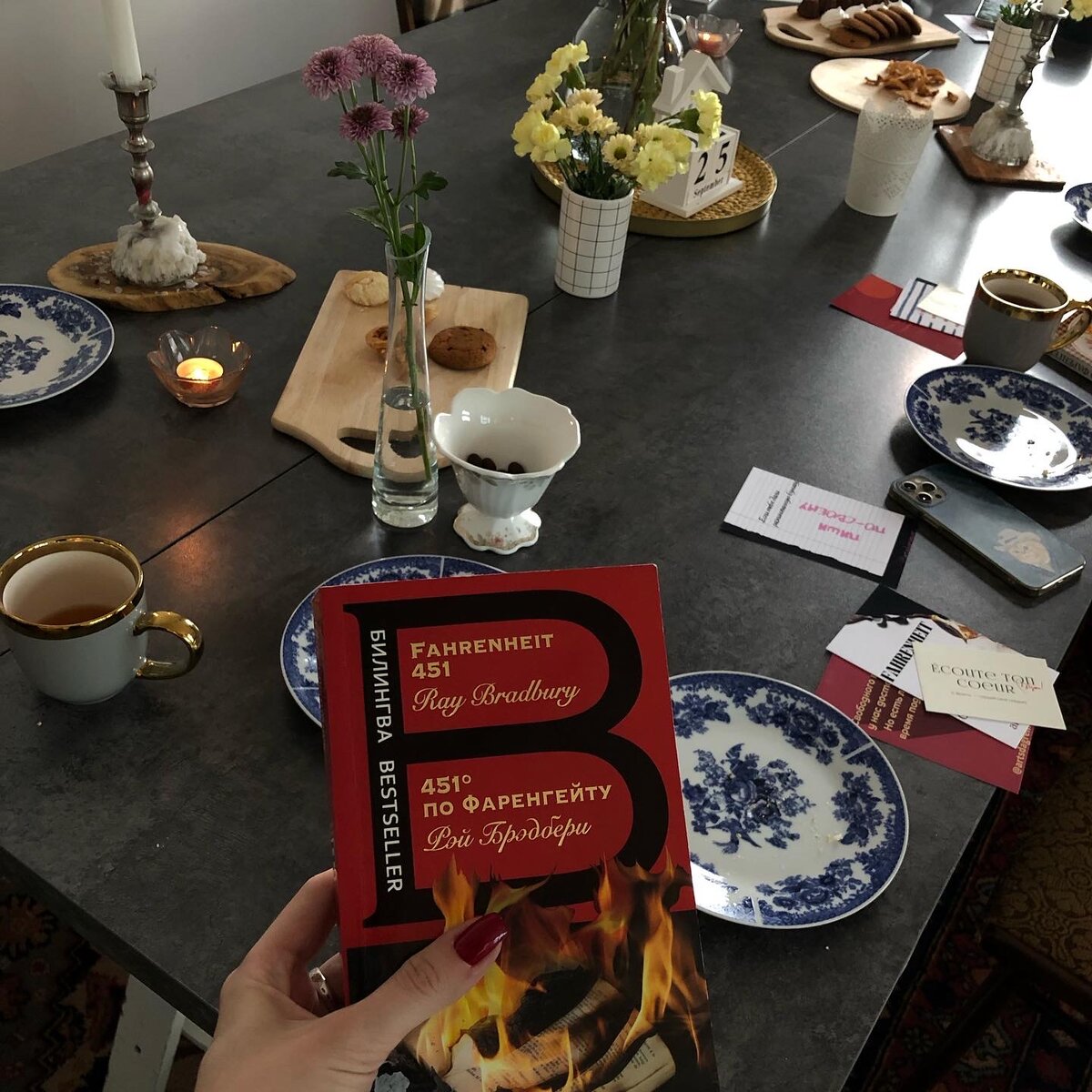 Сегодня мы обсуждали книгу «451* по Фаренгейту» Рея Бредбери. Роман мне очень понравился, показался даже актуальным в нынешние дни. Моя книга была с параллельным оригинальным текстом, так что вдвойне было интересно читать, всегда сравнивала, как передавались некоторые моменты на русском, а как на английском. В принципе рада вернуться к чтению, поскольку уже очень давно не читала так, как читала на первом курсе :) Несколько причин этому. Первая — попалась не самая интересная книга летом, я очень хотела поскорее ее дочитать, чтобы начать новую, но все время оттягивала, в итоге я ее так и не дочитала :) Вторая — много литературы в вузе на иностранном языке. Сейчас я читаю и на английском, и на немецком, что достаточно сложно 🙈 И сейчас, если у меня есть свободное время в транспорте, я читаю именно то, что нужно для вуза.