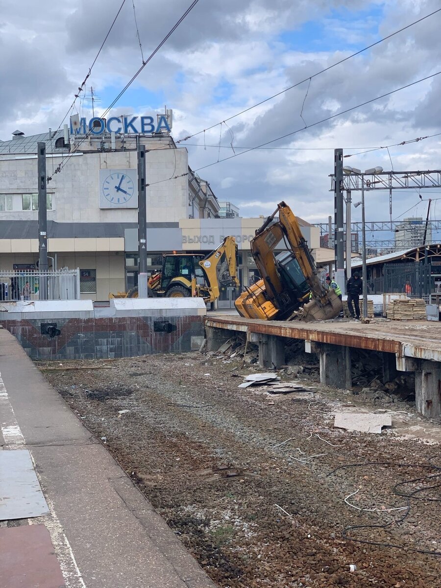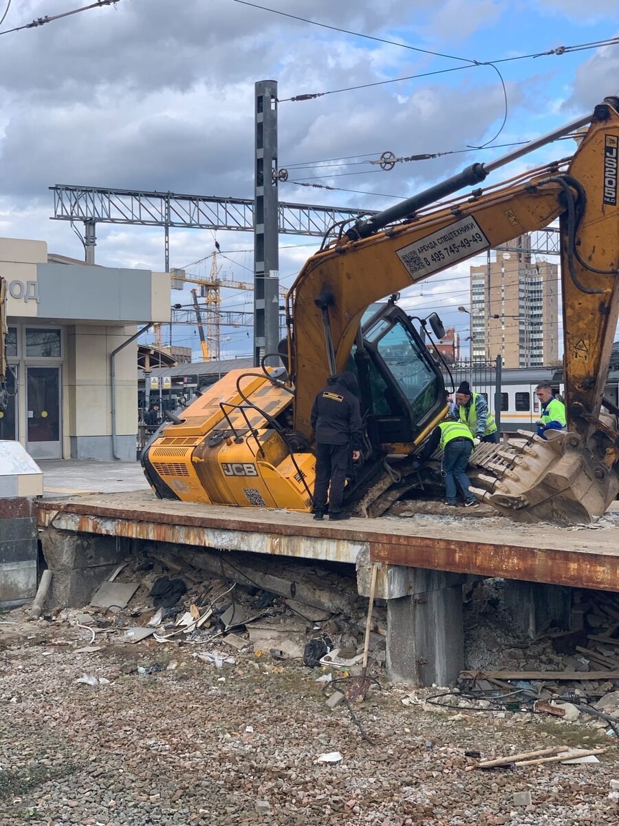Казус при начале работ по сносу платформы №6 для эл. поездов "Спутник" - экскаватор попал "в ловушку"